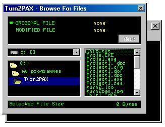 Click File - New Pax File. Then select Original File and Modified File by double-clicking then. After selecting files, press "Next".