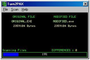 The program starts scanning files for differences and at the end of the scan the program asks for details about the PAX and Original file.